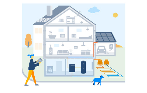 Bei der interaktiven Grafik können sich Verbraucherinnen und Verbraucher durch das Haus klicken und sehen, wie einzelne Geräte miteinander agieren. Das Erklärvideo zum „Energiesystem Haus“ wurde im selben Illustrationsstil wie die interaktive Grafik erstellt.