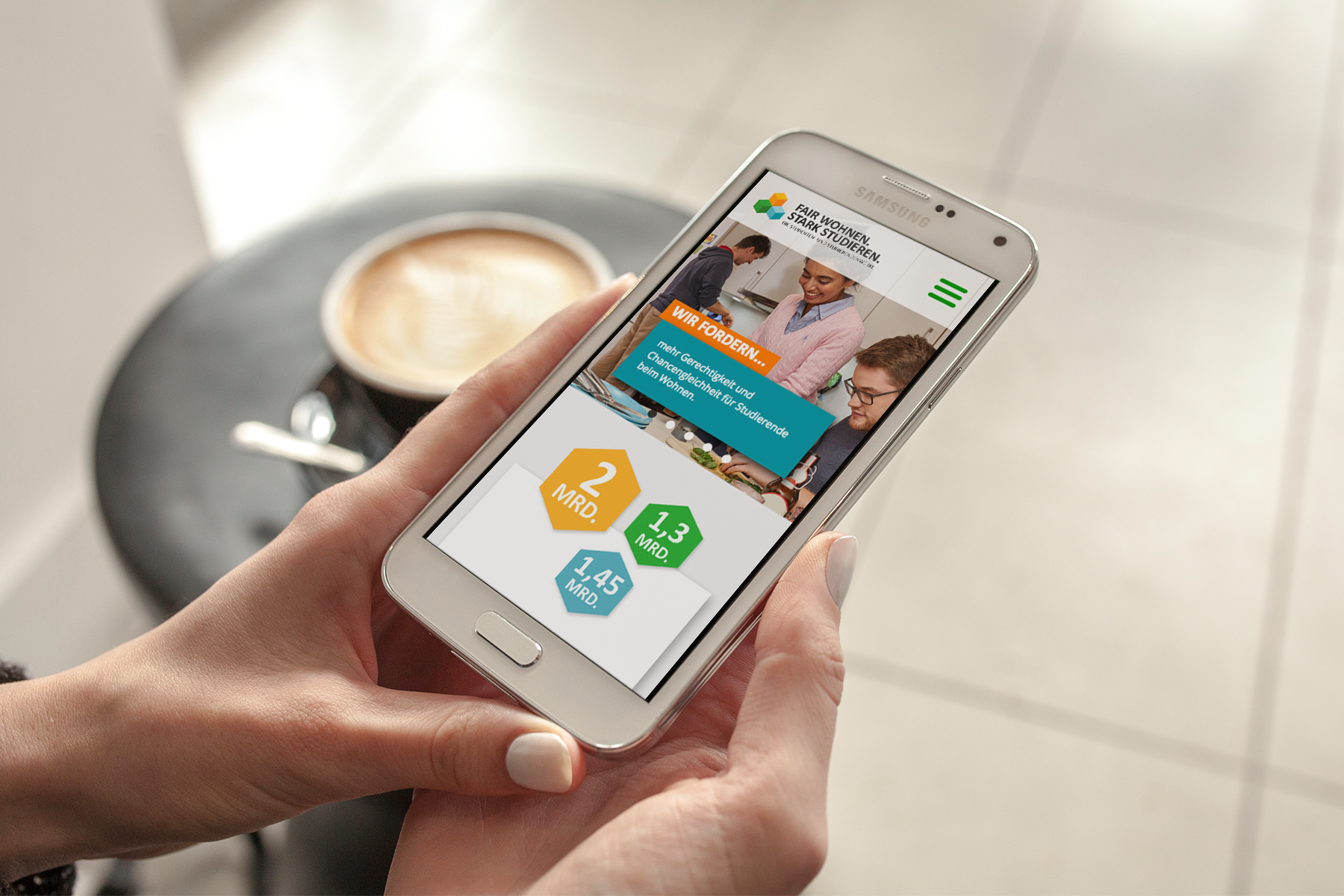Mit www.mein-studentenwohnheim.de erhielt die Kampagne zudem einen eigenen Webauftritt. Auf einer interaktiven Deutschlandkarte lassen sich die Standorte der Studentenwerke und die jeweilige Anzahl an Wohnplätzen abrufen. Die Website lädt außerdem zu einer Mitmachaktion ein, bei der jeder seine Stimme für mehr bezahlbaren Wohnraum für Studierende abgeben kann. Give-aways und großflächige Fassadenbanner runden das Maßnahmenpaket ab – und tragen den Ruf nach fairem Wohnen in die Öffentlichkeit.