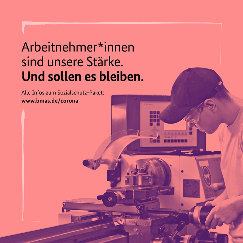 KOMPAKTMEDIEN hat als Rahmenvertragspartner des Bundesministeriums für Arbeit und Soziales (BMAS) die Kampagne für das umfassende Sozialschutz-Paket konzipiert. Es wurden sieben Motive entwickelt, die sich an Arbeitnehmende, Familien, Selbstständige und Unternehmen richten und über die einzelnen Maßnahmen informieren.