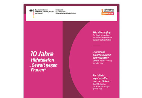 2023 beging das Hilfetelefon sein zehnjähriges Bestehen. KM organisierte einen Event im Bundesministerium für Familie, Senioren, Frauen und Jugend (BMFSFJ), an dem neben Bundesfrauenministerin Lisa Paus auch weitere Engagierte im Kampf gegen geschlechtsspezifische Gewalt teilnahmen, darunter die Ärztin und Schauspielerin Dr. Maria Furtwängler sowie die Anwältin und Autorin Asha Hedayati. Ein Hingucker war die Sonderpublikation zum Jubiläum: quadratisch, knallpink und prall gefüllt mit Zahlen, Fakten, Stimmen von Partnern und Impulsen aus zehn Jahren Hilfetelefon „Gewalt gegen Frauen“.
